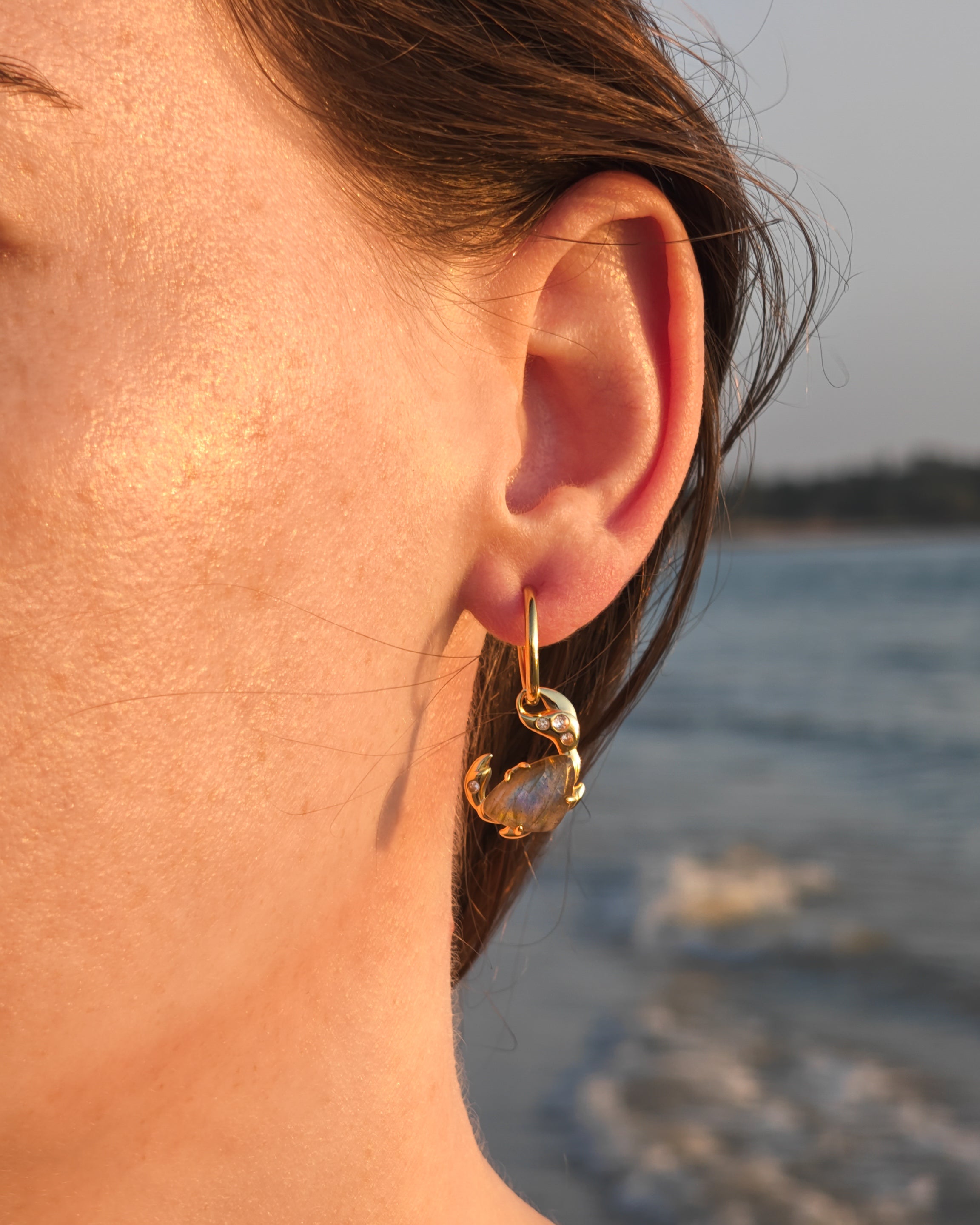 Natural Labradorite: Hand-carved and polished, each with its own unique glow and character, complemented by White Sapphire accent gemstones.